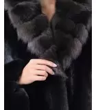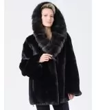 Mink Fur Coat with Marten Fur Hood in Black Description