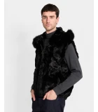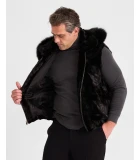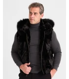 Mink Fur Vest with Fox Fur Trim in Black Description