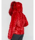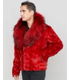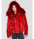Mink Moto Jacket with Fox Collar & Hood in Red in Men