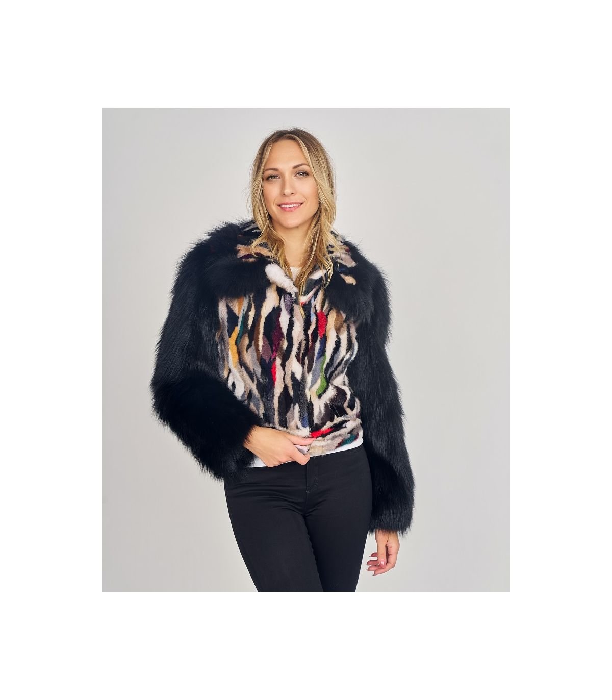 Multicolor Mink Fur Jacket with Fox Fur Sleeves