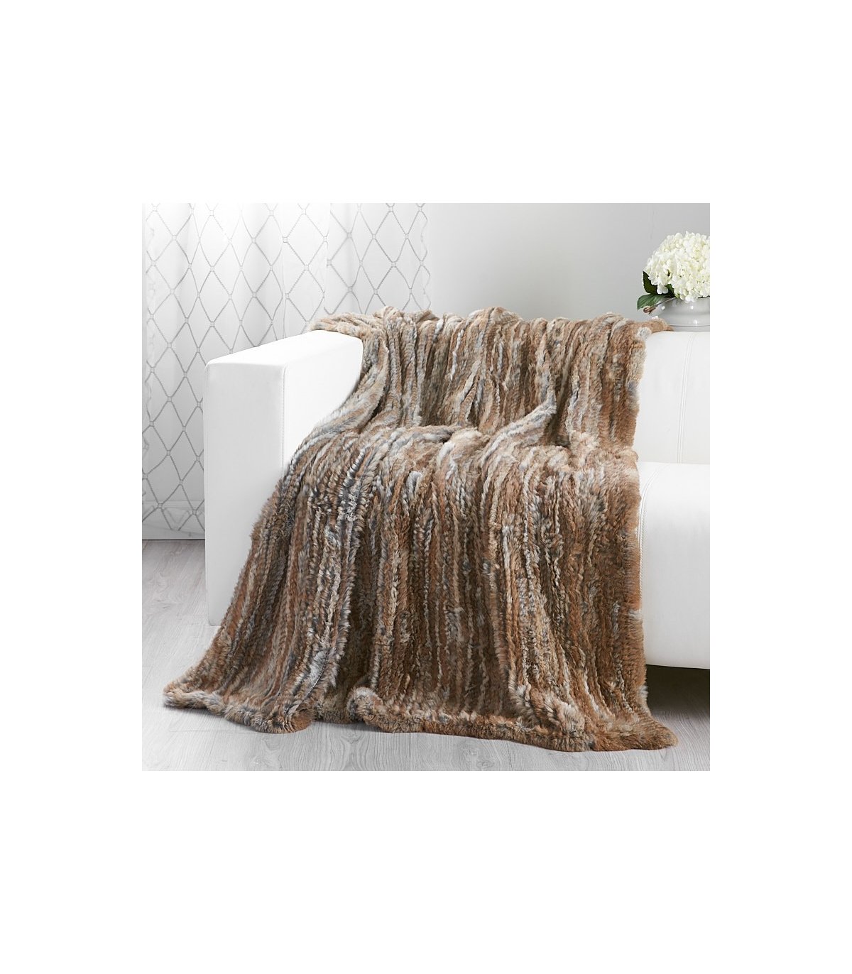 Natural Brown Knit Rex Rabbit Fur Throw Description