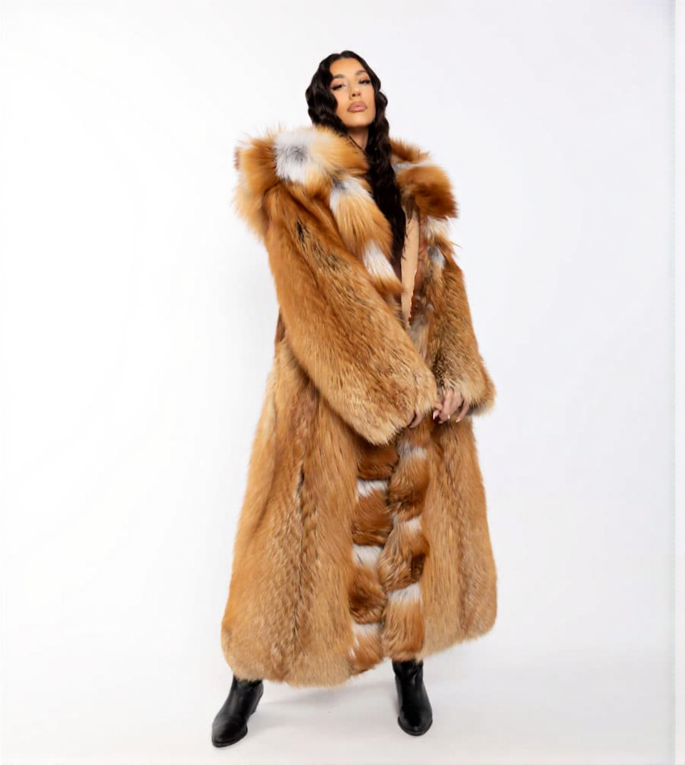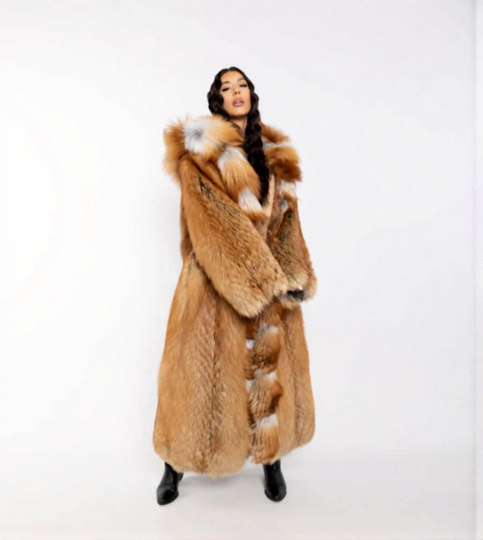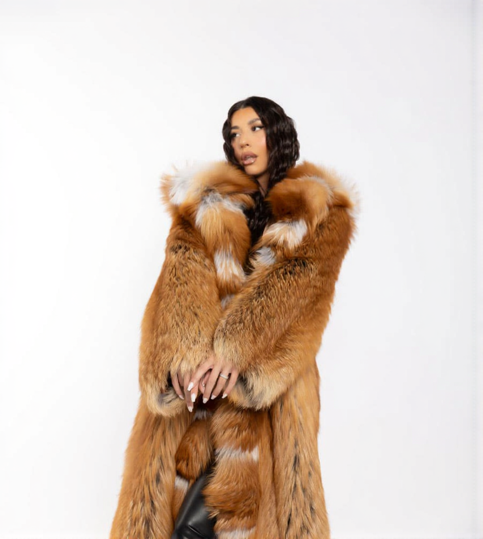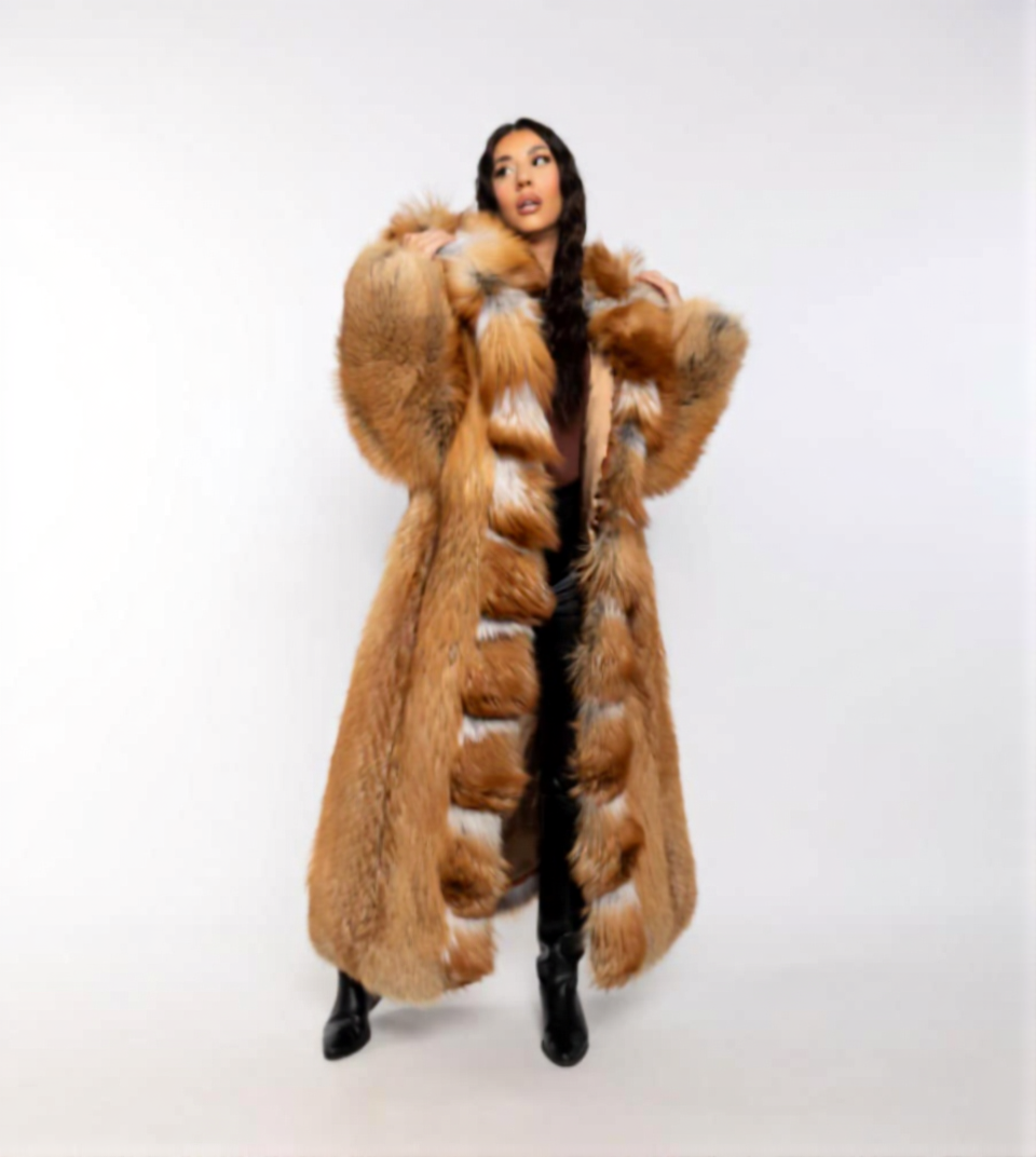 Nicole | Gold Fox Fur Coat Full Skins With Hood
