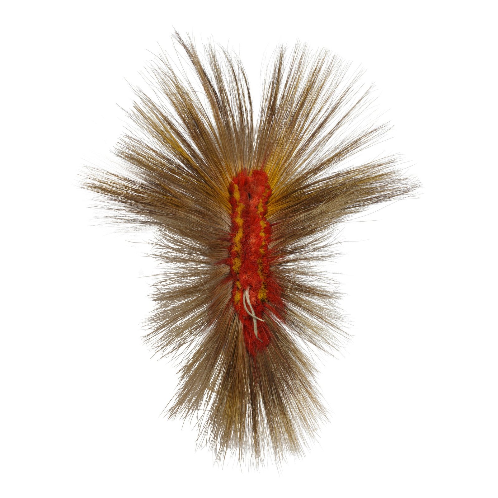 Early Northern Plains roach of porcupine guard hair and deer tail with dyed red and yellow deer tail center.