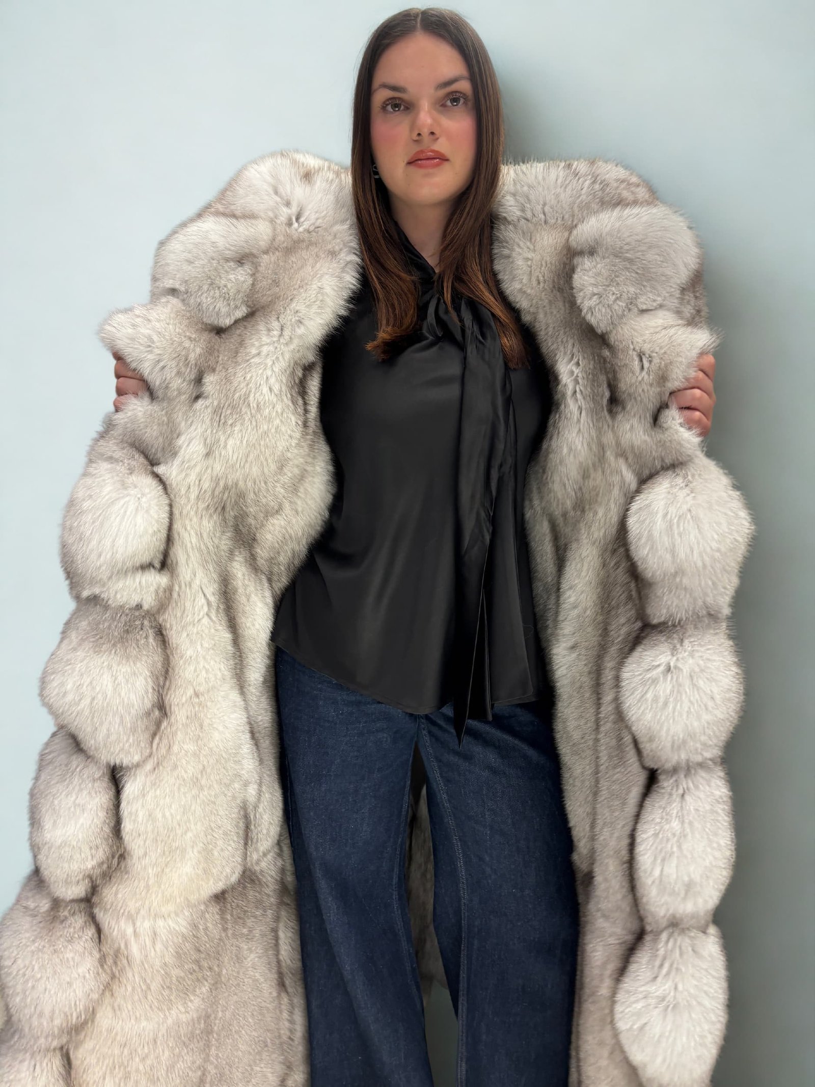 Kirrily | Luxury Rare Scandinavian Sapphire Blue Fox Full Length Fur Coat With Extra Lavish Huge Collar Original price was: $4,656.00.Current price is: $3,457.08.