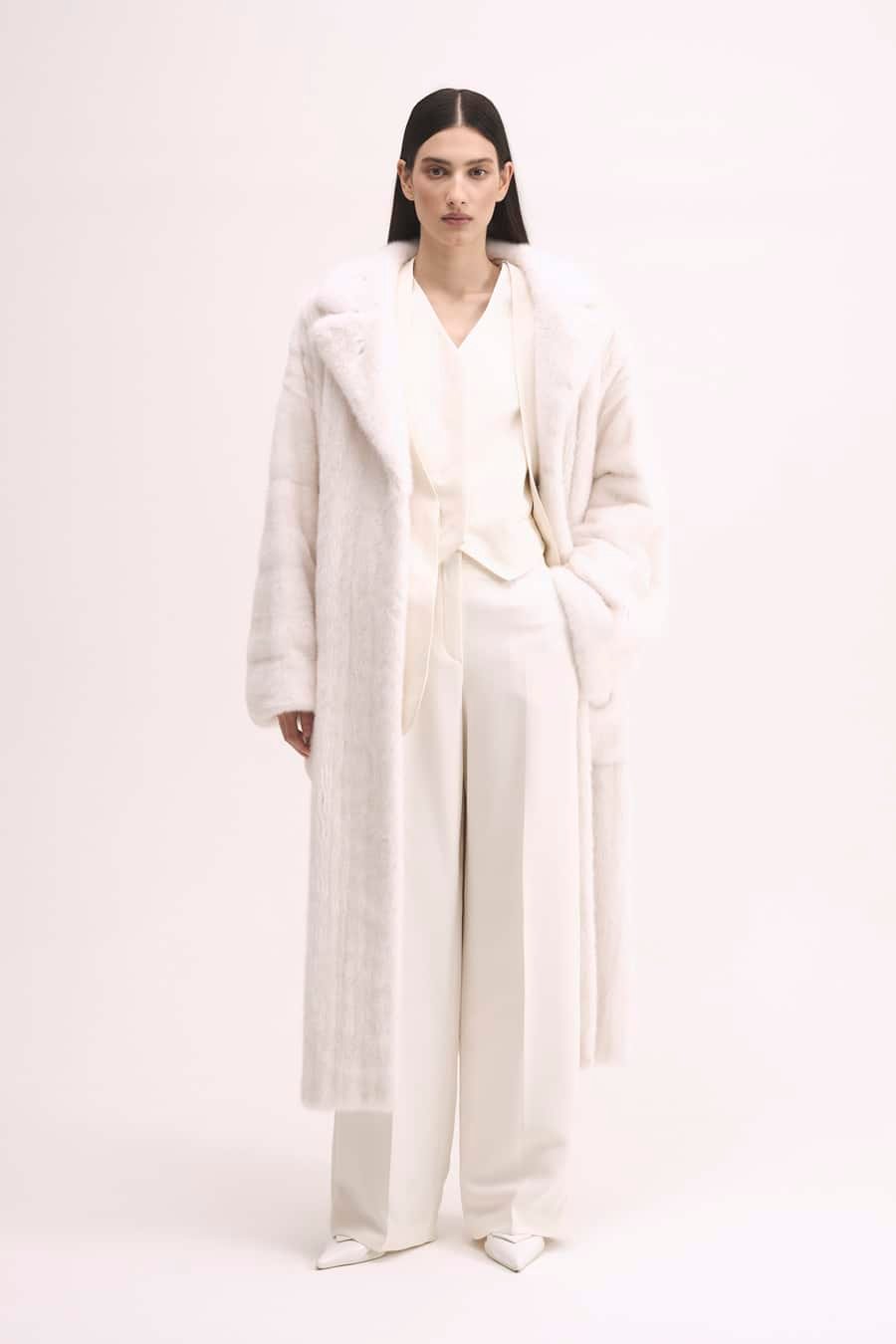 Willy | Luxury Velvet American White Mink Fur Coat With Double Fur Notched Collar & Fur Belt
