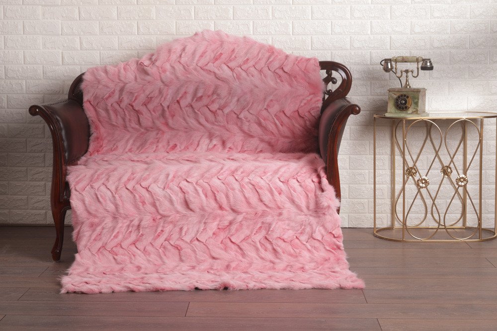 Pink Chevron Fox Fur Fur Blanket Throw Cover Spring
