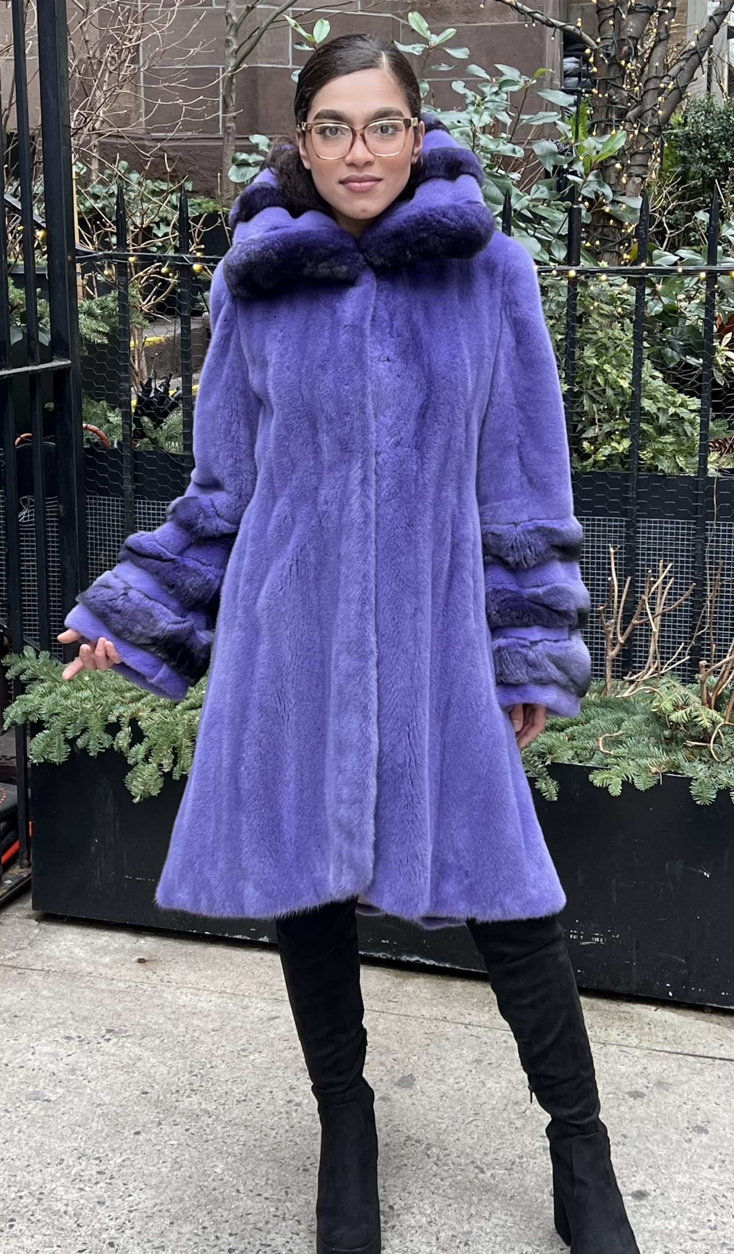 Purple Mink Swing Coat Chinchilla Trim
