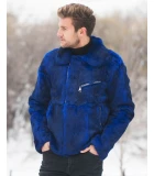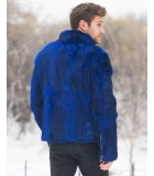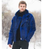Rabbit Fur Biker Jacket in Blue