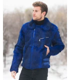 Rabbit Fur Biker Jacket in Blue Description