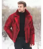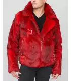 Rabbit Fur Biker Jacket in Red