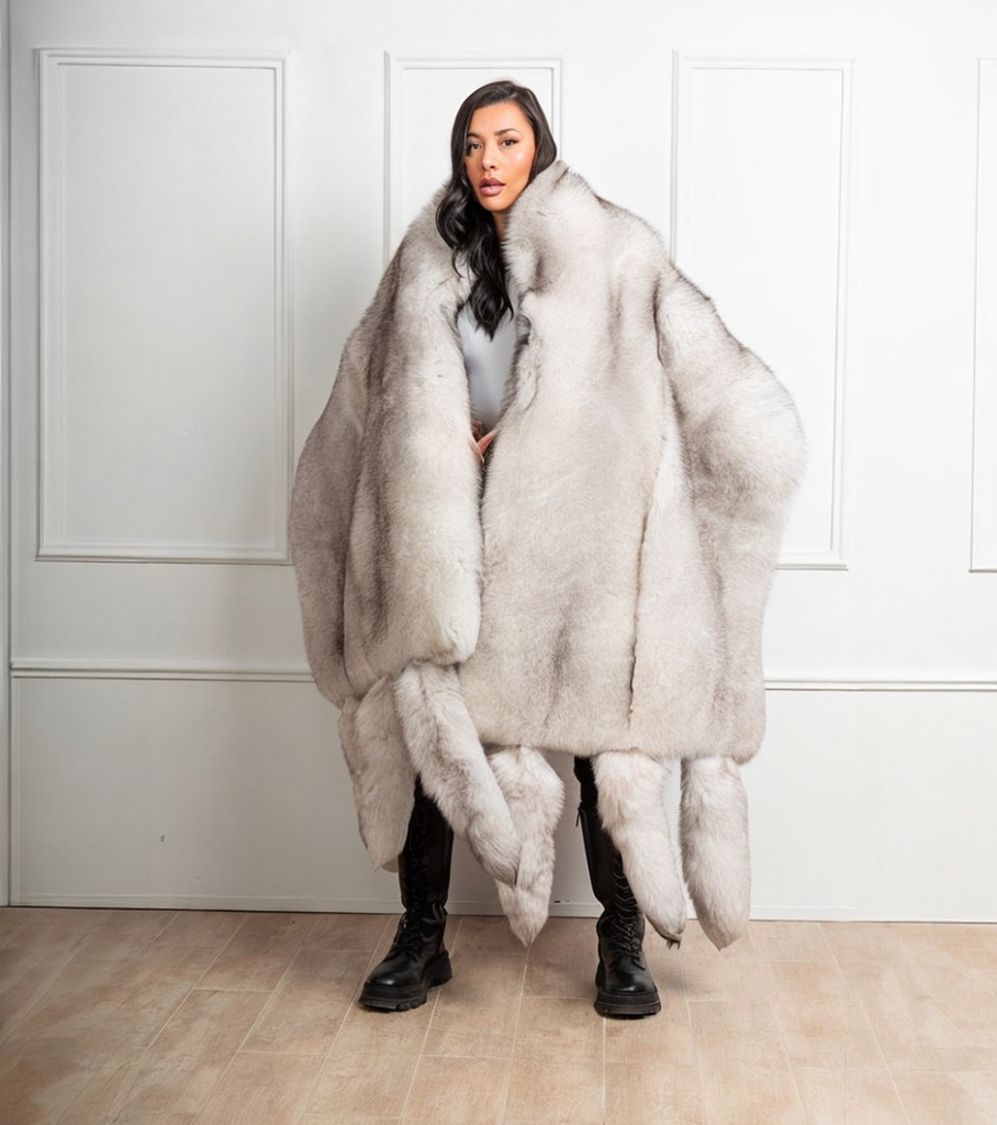 Raphaela | Luxury Double Side Scandinavian Blue Fox Boa – Cape Both Sided Fox With Detachable Tails