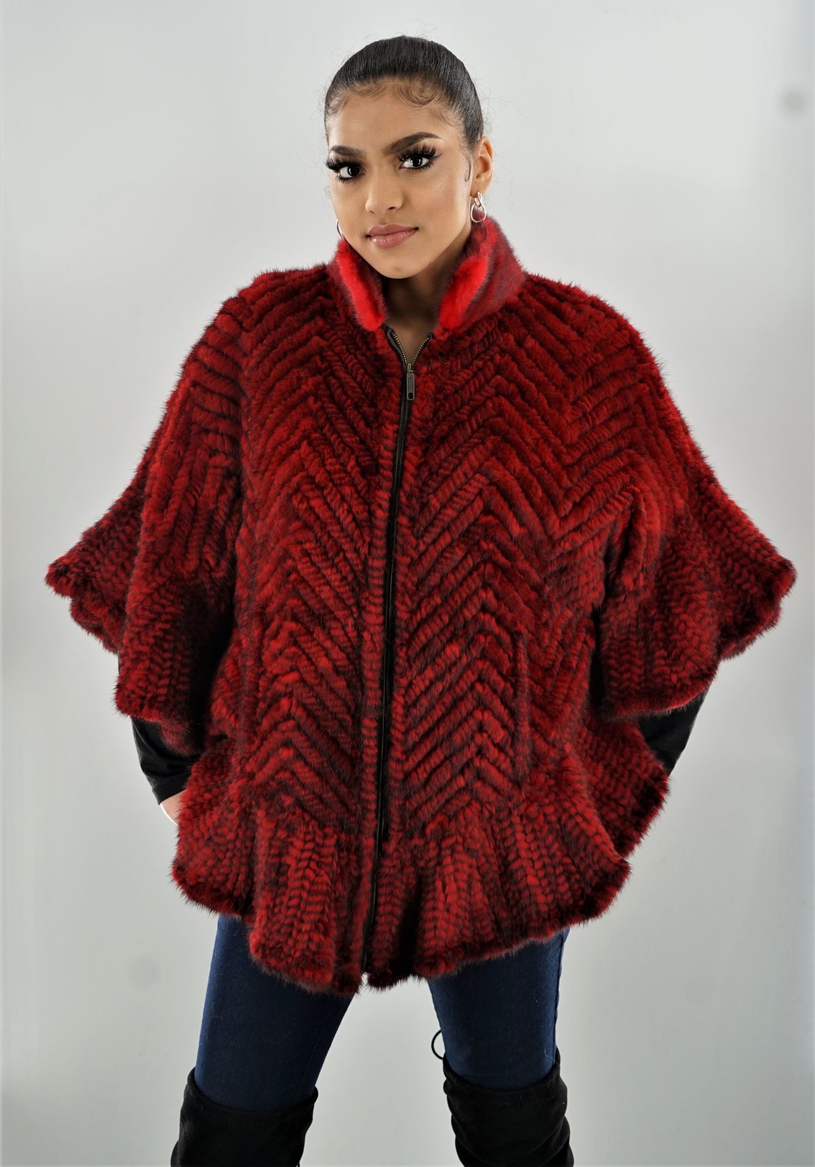 Red Knit Mink Poncho Soft, stylish, and warm with a luxurious knit mink design. A chic and cozy piece perfect for any season.