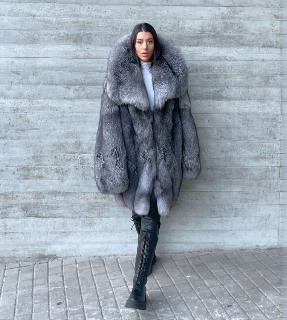 Jade | Luxury Scandinavian Silver Fox Fur Coat With Lavish Huge Collar Original price was: $3,528.00.Current price is: $2,634.24.