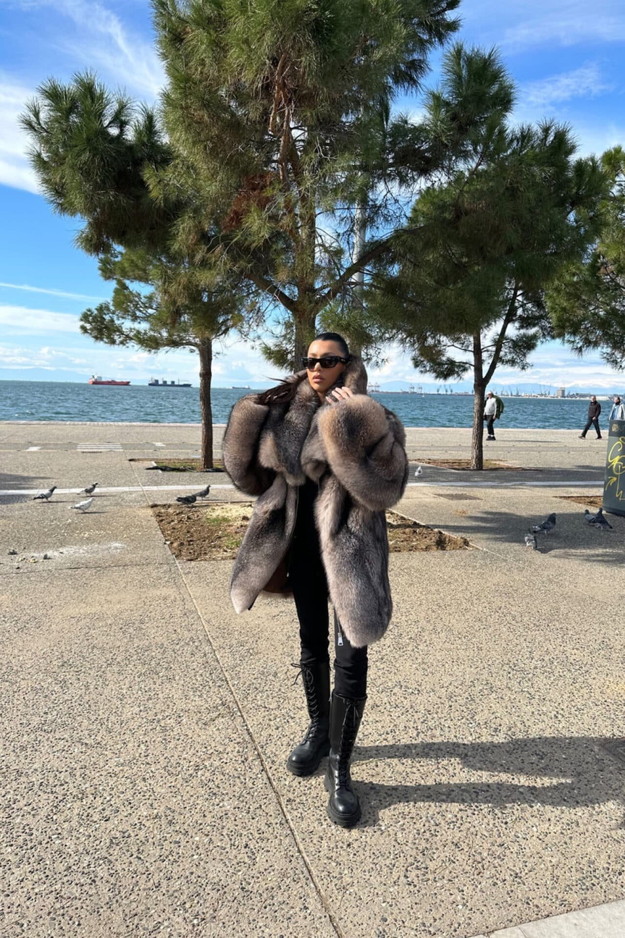 Nevaeh | Luxury Crystal Fox Fur Jacket With Huge Collar