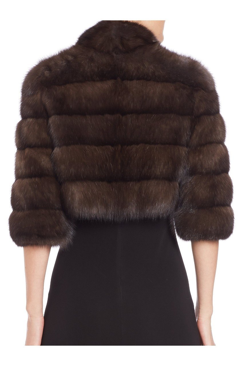 Top off your strapless ball gown or fitted sheath dress with a stunning Russian sable bolero jacket. The Hermione features the classic bolero fit that ends just above the waist with fitted elbow-length sleeves to match. A short, plush collar accentuates the boxy, tailored fit with an added touch of comfort and warmth.