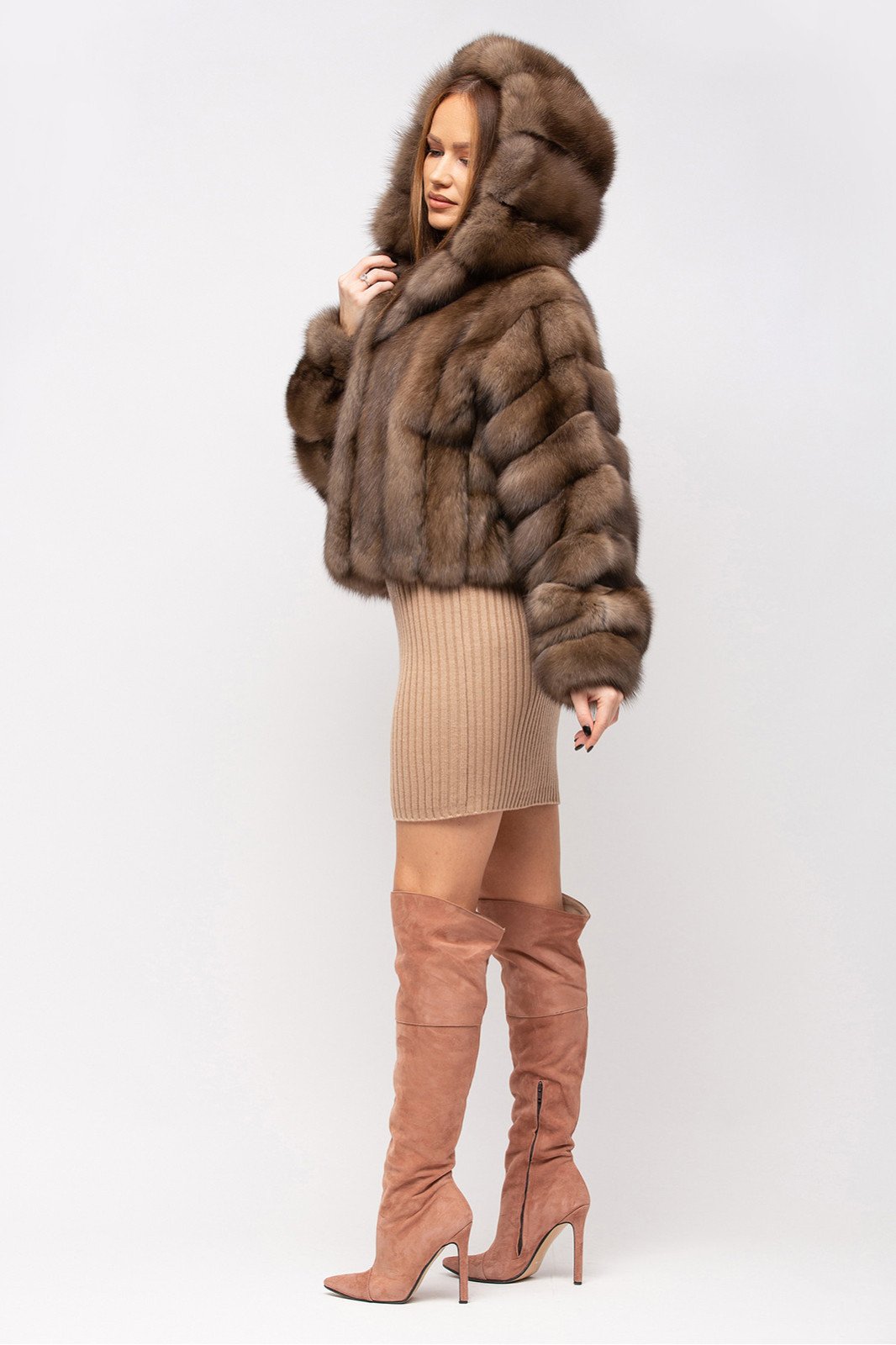 Elevate your outerwear collection with this chic short hooded brown sable fur jacket. Crafted for style and comfort, this jacket features a straight fit that flatters all figures while allowing for effortless layering. The cozy hood provides added warmth and a modern touch, making it perfect for those chilly days. Cuffed sleeves enhance the jacket’s refined look while ensuring that you stay snug. Made from luxurious sable fur, this jacket offers a sumptuous feel and exceptional insulation. Versatile enough for both casual outings and dressier occasions.