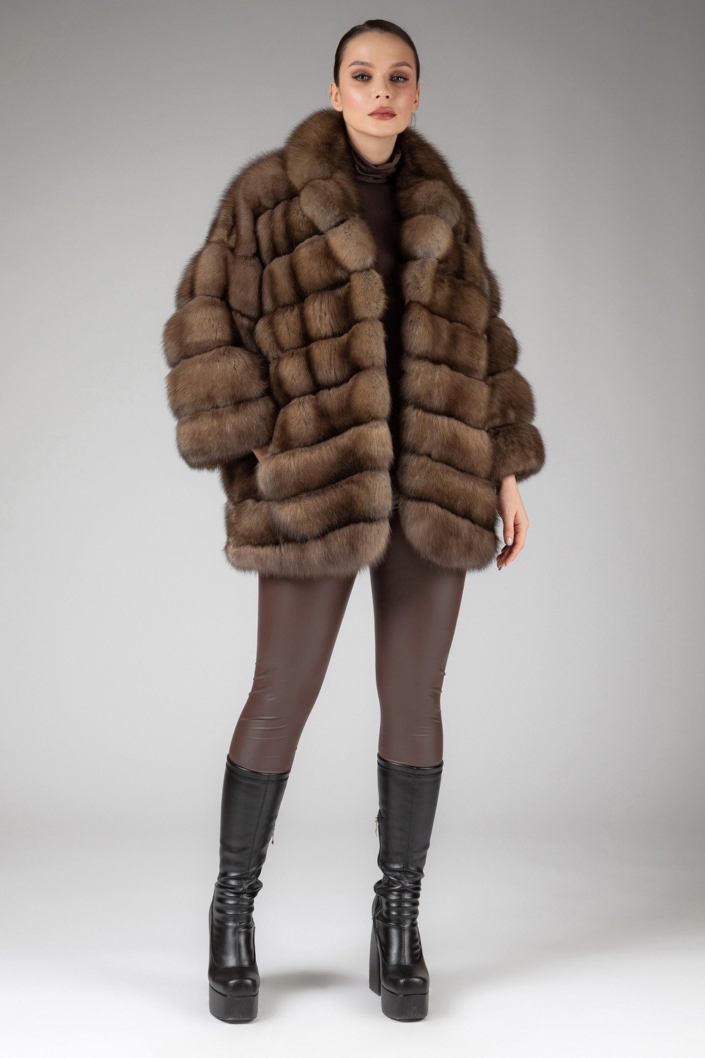 Sumptuous Sable Fur: Our commitment to uncompromising quality is evident in the choice of sable fur for this coat. The fur’s softness, sheen, and rich light brown color exude an air of natural elegance that is simply unmatched. Each sable pelt is meticulously chosen for its exceptional quality, ensuring a coat that feels as luxurious as it looks.