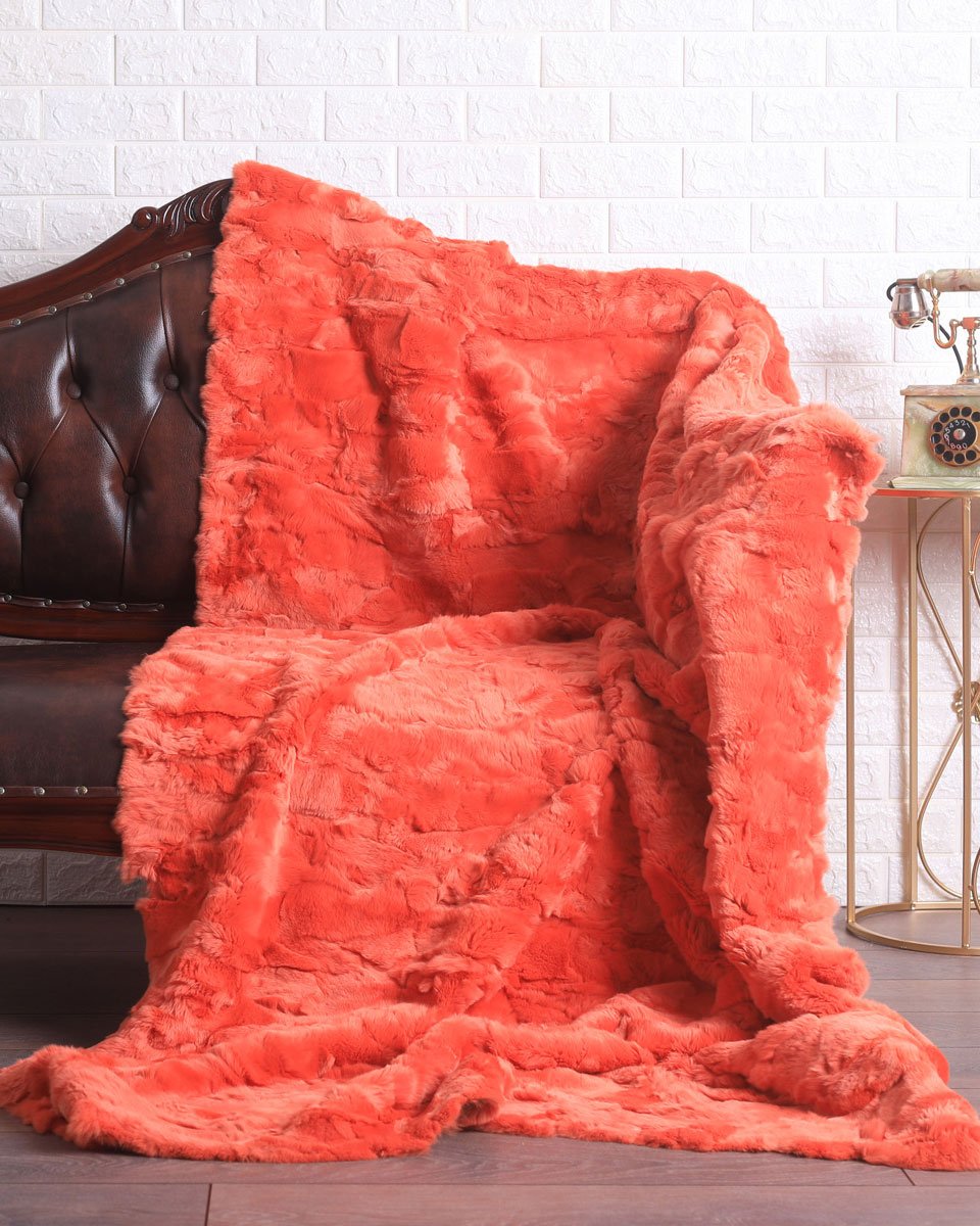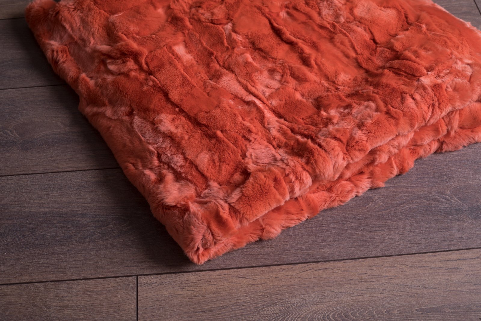 The Neon Orange Rex Fur Blanket or Throw is a bold statement piece that combines vibrant design with luxurious comfort. Crafted from uneven triangular fur pieces, this throw features a striking mosaic pattern that is truly one-of-a-kind. The intense neon orange color, reminiscent of a radiant sunset, adds a dynamic and eye-catching element to any space.