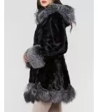 Sculptured Mink Fur Hooded Coat with Fox Fur trim