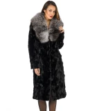 Shadow Black Etched Mink Fur Coat with Silver Fox Shawl Collar