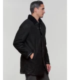 Function and style come together in this Shearling Sheepskin Jacket for men with Mink fur trim in black. Elevate your style this winter with a naturally warm product, shearling sheepskin. The warm wooly interior has a leather suede shell to help you withstand the elements whether you are commuting to work or walking the dog. The glossy black genuine mink fur collar and lapel is a touch of luxury on this stylish piece.