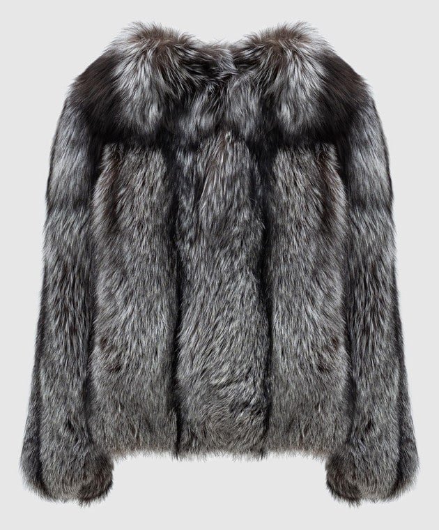 Sibyl | Luxury Scandinavian Silver Fox Fur Jacket With U Type Collar