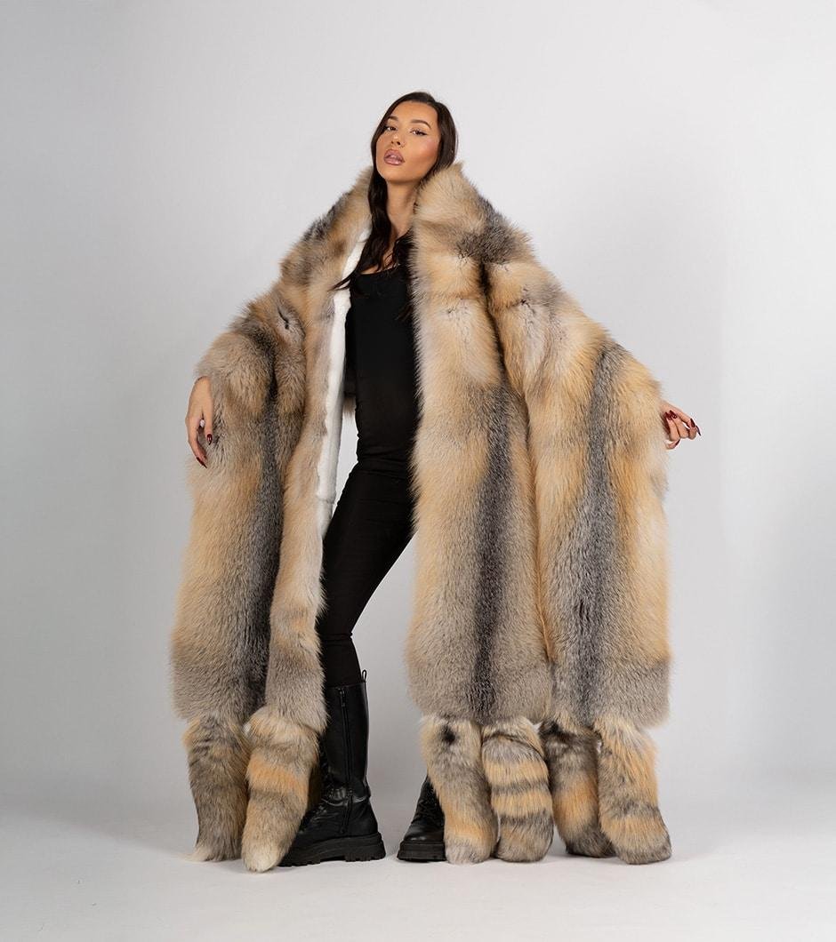 Sorel | Luxury Saga Double Face Scandinavian Golden Island Fox & White Rex Boa-Cape With Detachable Tails