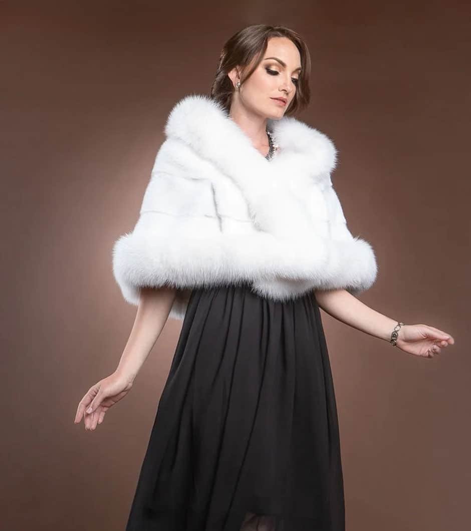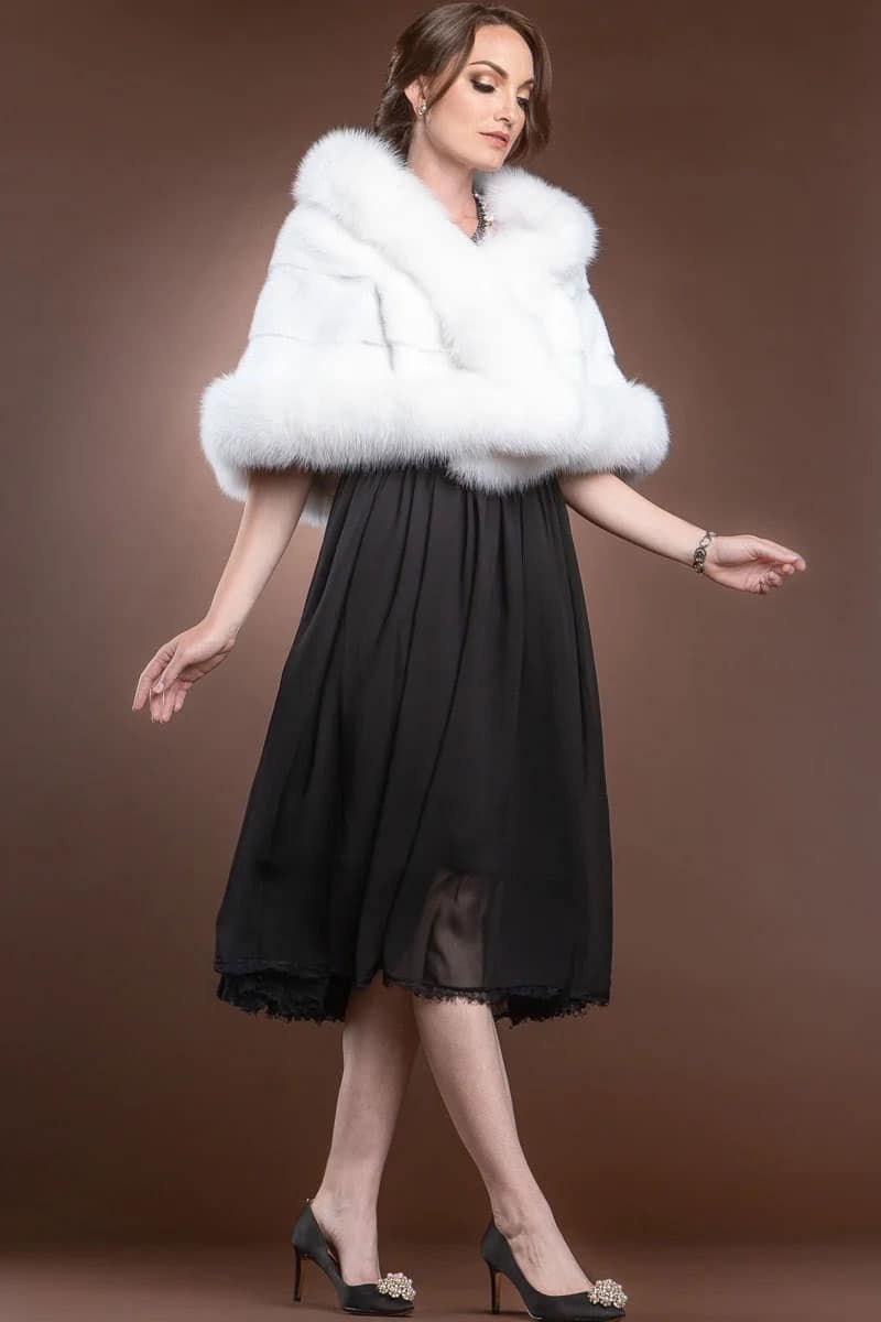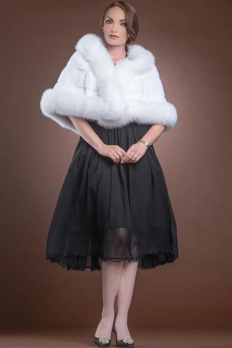 Tru | Luxury Wedding White Mink With Fox Trimming Bridal Fur Cape