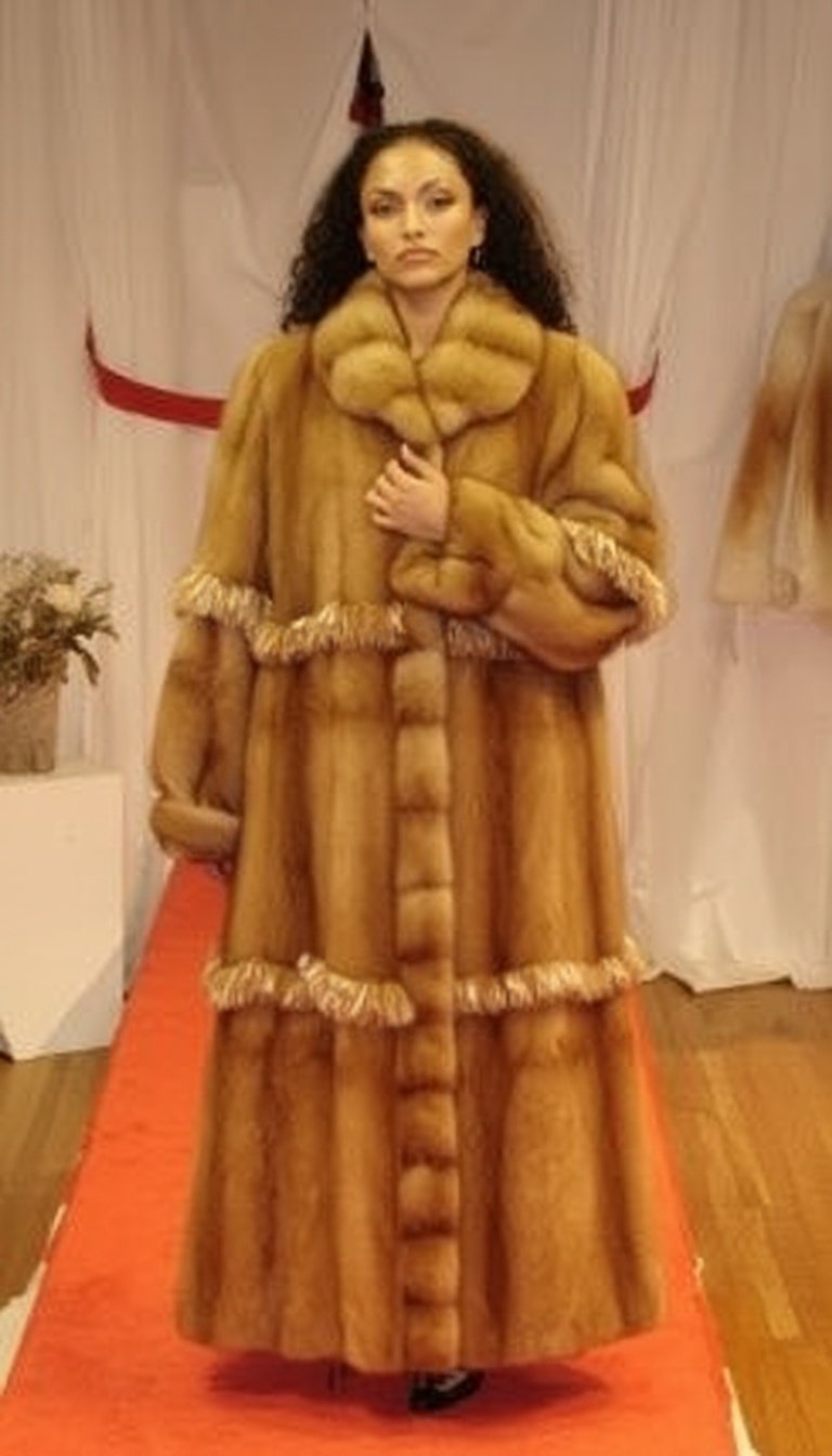 Casual, Sporty, and edgy, this Whiskey full length mink coat, cross cut shawl collar, cross cut mink fronts, fringes and turn back cuffs, This fur coat has it all. You can shop in the morning at Lord & Taylor, have lunch with the girls at Bonefish Grill, Head to Neiman Marcus and Finnish off at TJ Maxx. This coat will take you where ever you want to go, Dress it up