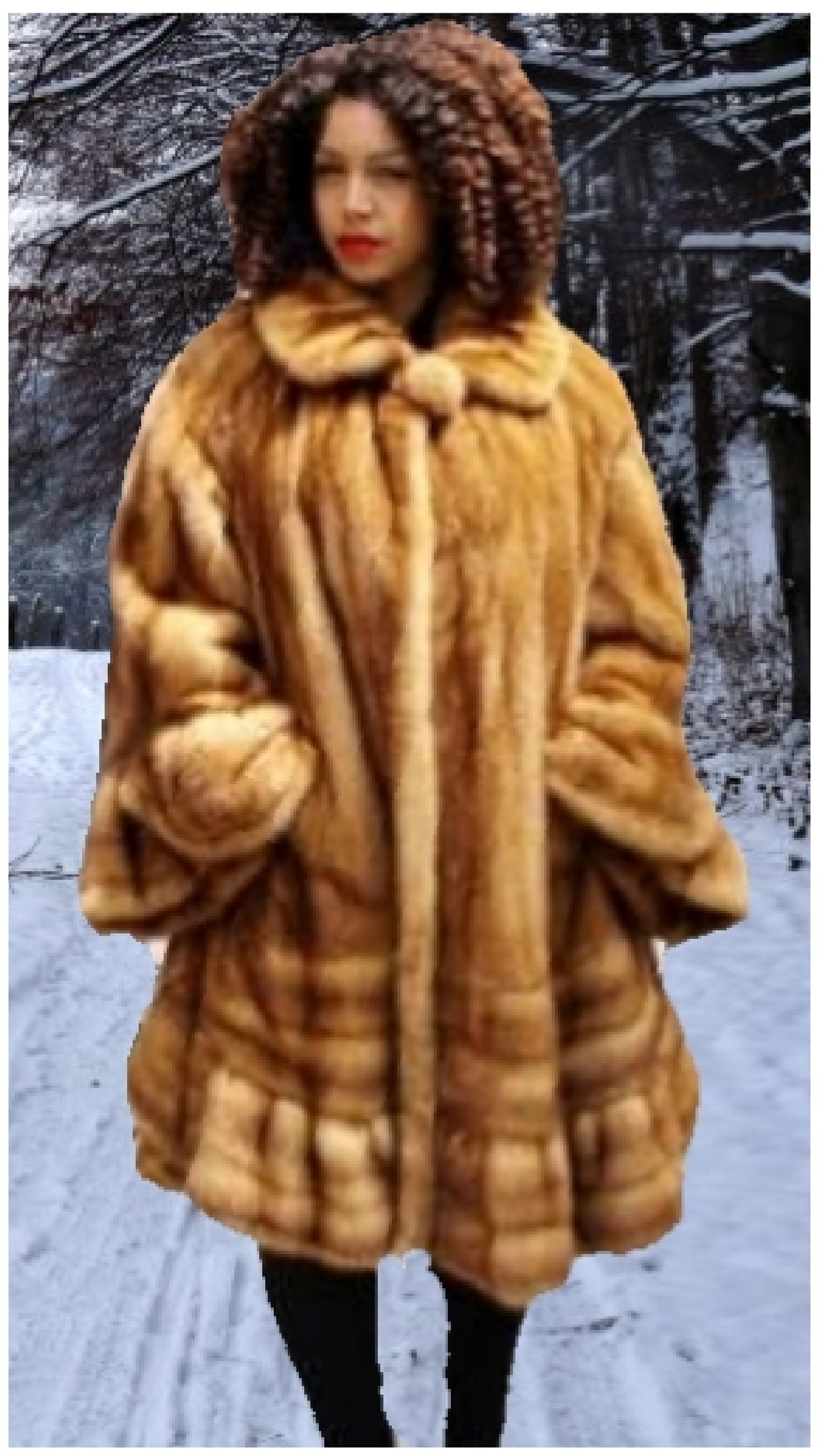 Whiskey Mink Fur Swing Stroller Bell Sleeves Directional Bottom 8877