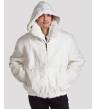 White Rabbit Fur Hooded Bomber Jacket for Men