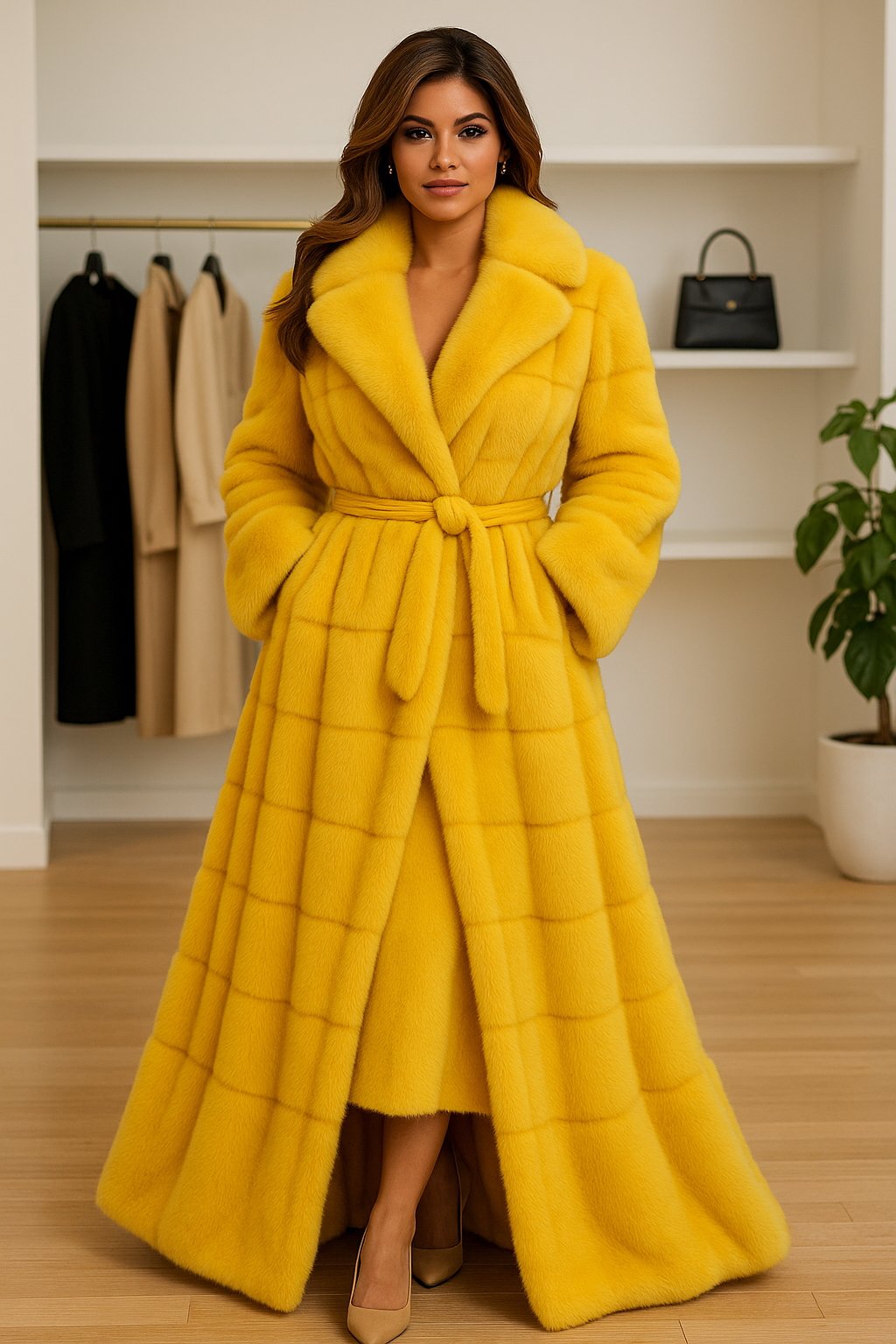 A yellow mink coat with a matching skirt is a luxurious statement piece and NYC offers a variety of venues where you can wear it: