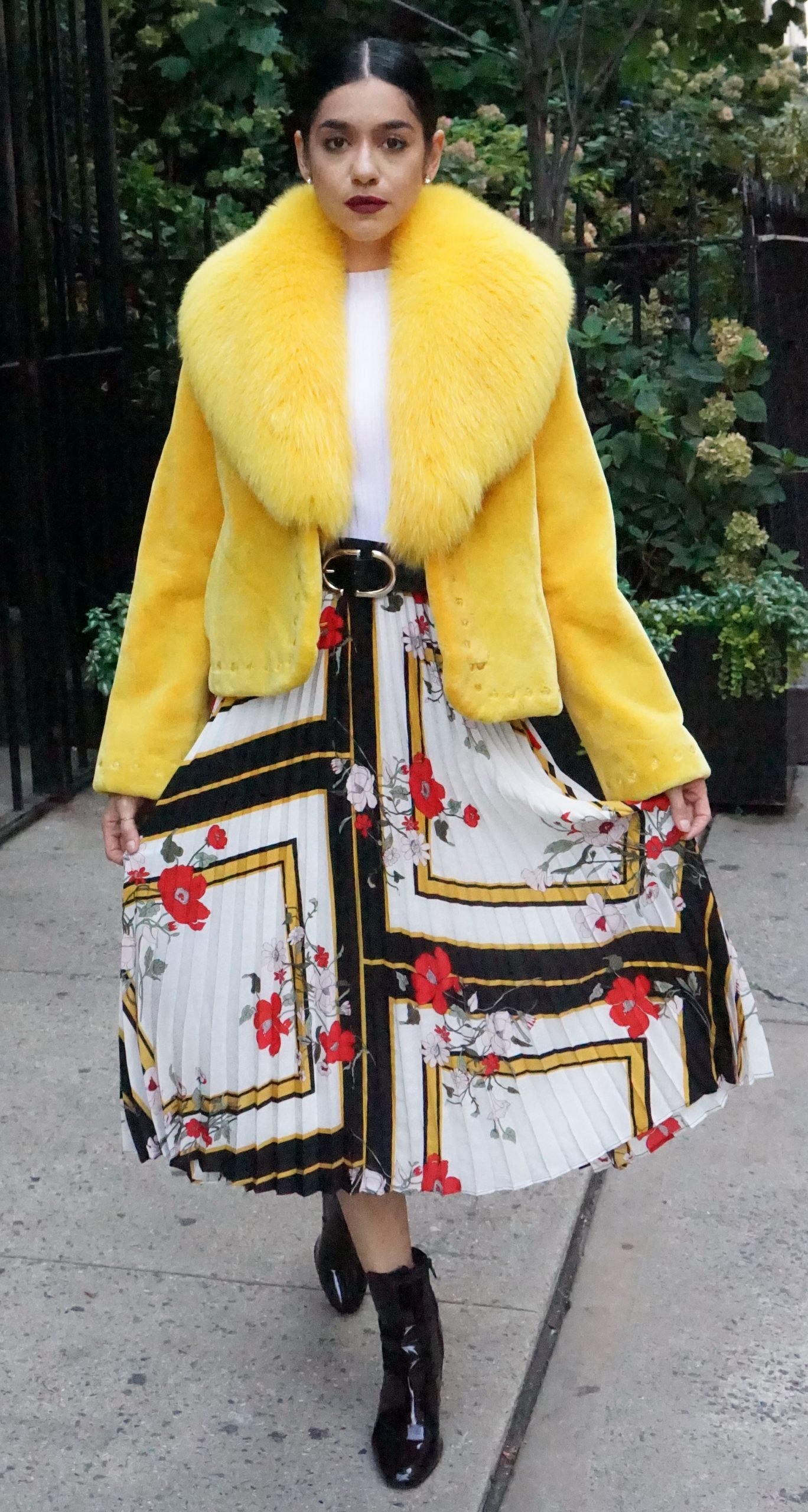 Zuki Yellow Sheared Beaver Jacket Fox Collar
