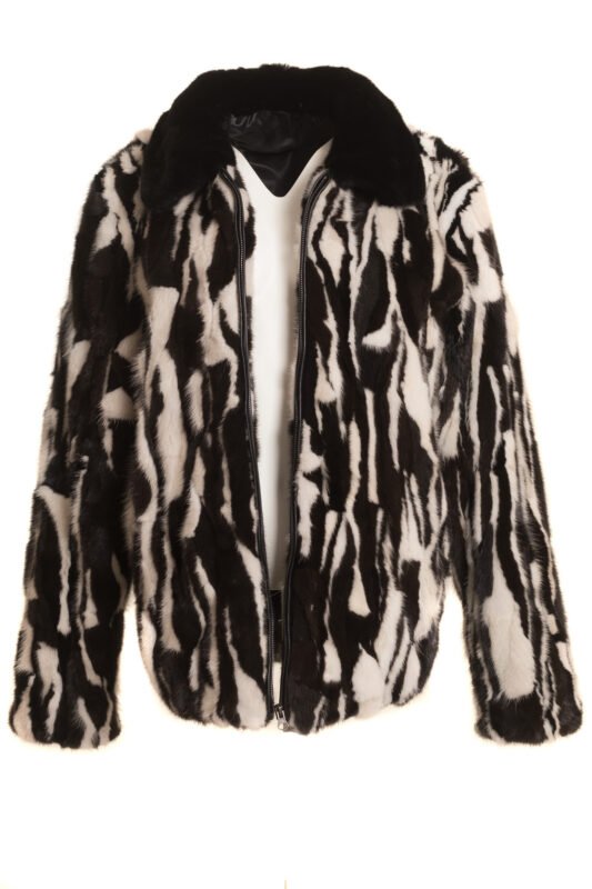 Black White Mink Coat with Belt 347
